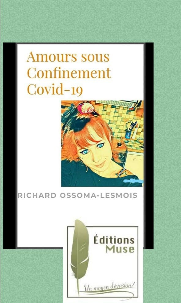 AMOURS SOUS CONFINEMENT COVID-19, roman de Richard Ossoma-Lesmois (Muse, Allemagne). Quand Morgane Barach, partenaire artistique de l'écrivain humaniste, observe sa photo en couverture du livre.